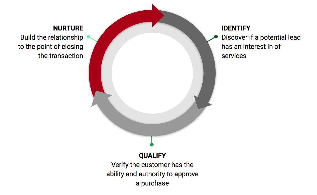 The goal of prospecting is to identify potential opportunities for a sale. This is achieved by focusing on three major components.
